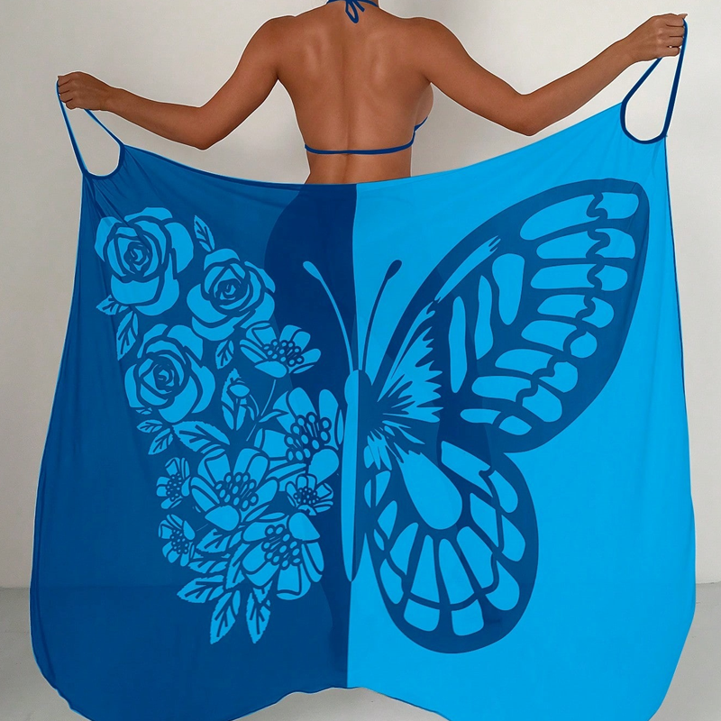 Lieferumfang: 1× Damen-Badeanzug-Cover-up mit Schmetterlingsmuster